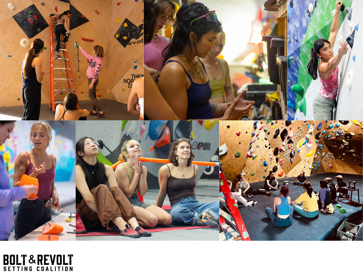 Bolt & Revolt exists to create visibility and opportunities for setters. Through setters support, setter visibility, networking, events, and clinics, Bolt & Revolt is creating space to elevate the craft and increase participation from underserved user groups. B&R’s clinics allow setters everywhere — from local gyms and neighboring communities to traveling participants — to come learn routesetting together in a welcoming and educational environment.